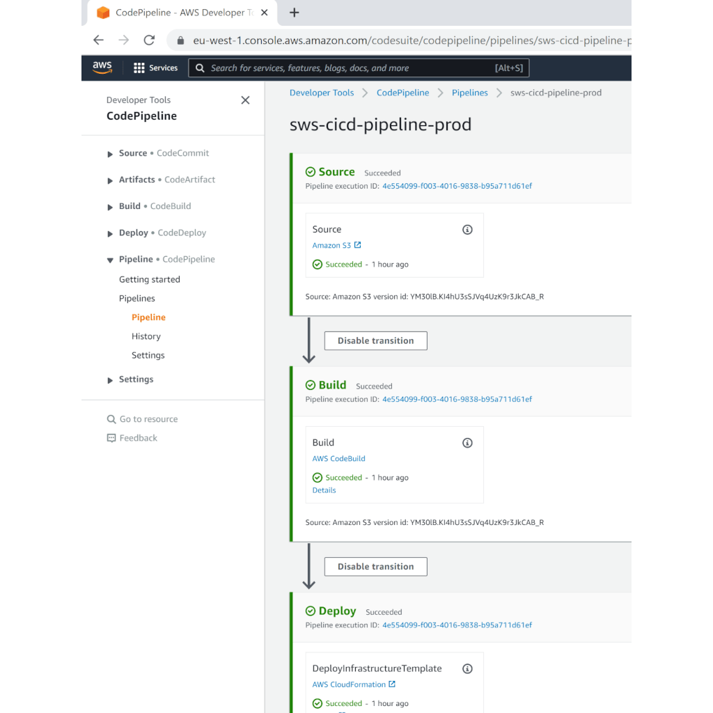 Commit your code and it automatically builds on AWS, and deploys after your manual approval.