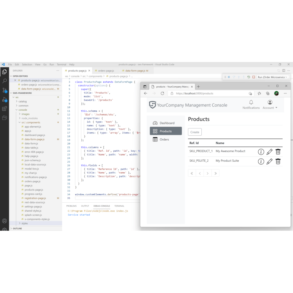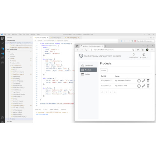 The framework comes with a highly-customizable SPA front-end console demonstrating microservice communication, with built-in data-driven components to facilitate development.