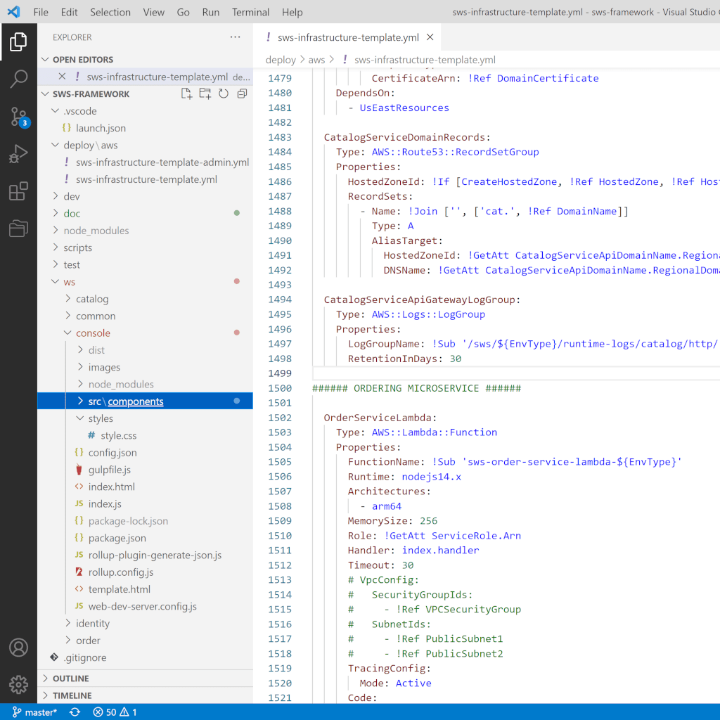 Your entire infrastructure definition resides as CloudFormation source code. Need infrastructure updates ? Just modify the CloudFormation template and commit your changes just as any other source code. Done ! Plus, all configuration files are automatically updated to match the infrastructure updates.